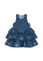 Das Elba Jeanskleid von Konges Sløjd verbindet verspielte Details mit robustem Denim-Charme. Dieses Kleid aus 100 % Bio-Baumwoll-Denim ist nicht nur langlebig, sondern auch bequem für Kinder. Es präsentiert einen mehrstufigen, schwingenden Rock, der zum Tanzen einlädt, und ist mit kleinen Pailletten-Kirschen bestickt – ein funkelnder Hingucker für kleine Obst-Fans! Der klassische Rundhalsausschnitt und ein Knopfverschluss im Nacken machen das Anziehen einfach. Ob für den Kindergarten oder Familienfeste: In diesem Kleid fühlt sich deine Kleine frei und hübsch zugleich.